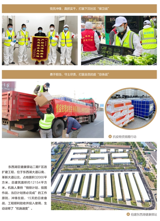 疫情期間 ,機(jī)施公司先后參與了37個(gè)抗疫應(yīng)急搶建任務(wù),平均每天建成一座“生命方舟”,累計(jì)提供床位16000余張,并先后向社會(huì)各界捐贈(zèng)抗疫捐款及防疫物資263萬(wàn)元 ,成為集團(tuán)公司參與抗疫任務(wù)最多、 提供床位最多、對(duì)外捐贈(zèng)最多的單位,榮獲集團(tuán)“抗擊疫情立功單位”榮譽(yù)稱(chēng)號(hào)。